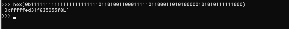 >>>hex(0b111111111111111111111110110100110001111101100011010100000101010111111000)