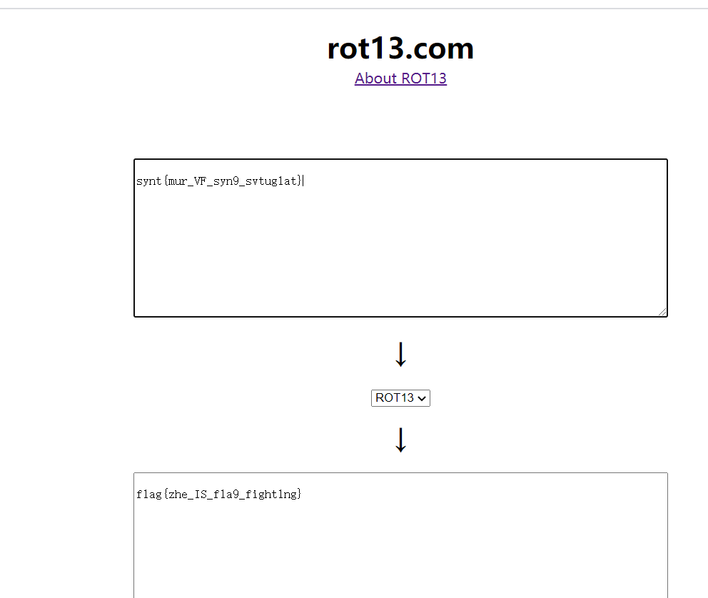 注:rot13使用一个简单的替换加密算法,对前字符13个字符和后13字符对调