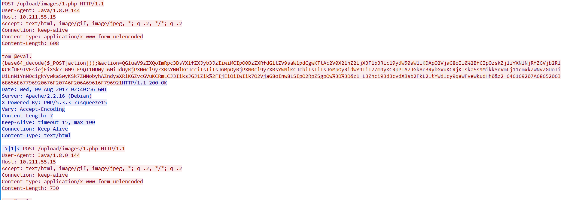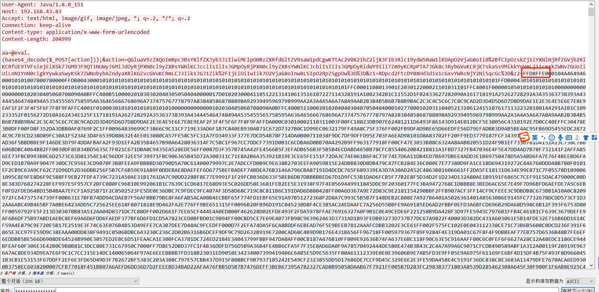5.可以看到是传了webshell然后进行文件操作,一般是传webshell然后菜刀连接,参数进行base64位加密,先解密参数