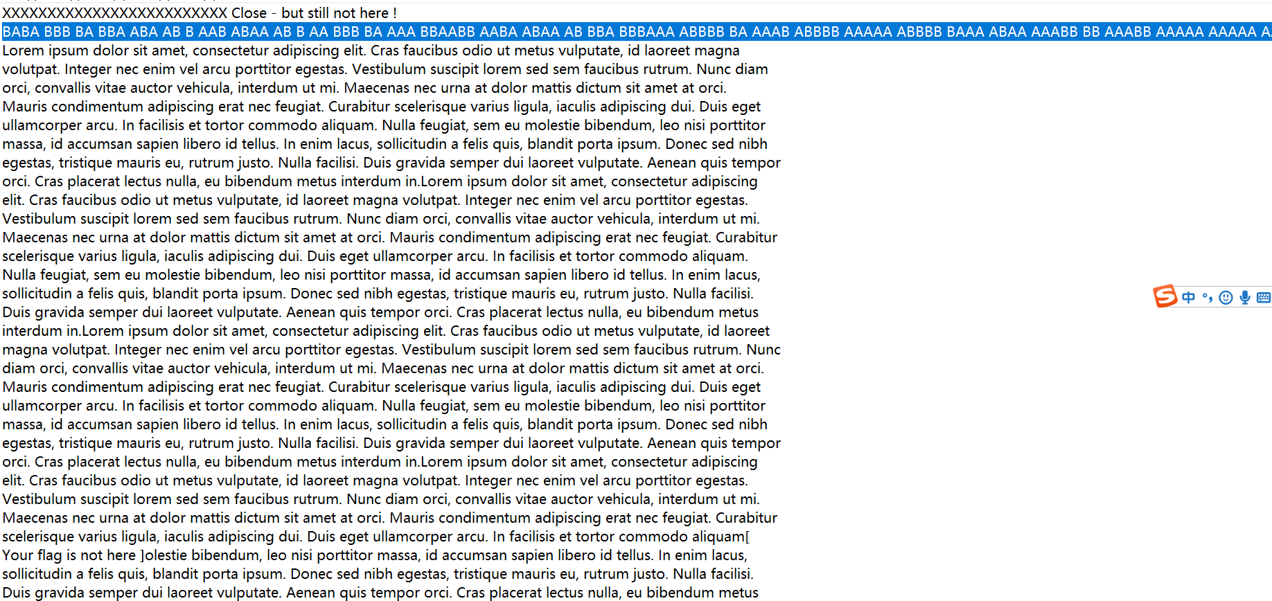 2.一大段AABABA样式的东西,猜测是01但是这些有分割,能想到的只有摩斯密码有分割的,于是尝试改成摩斯密码