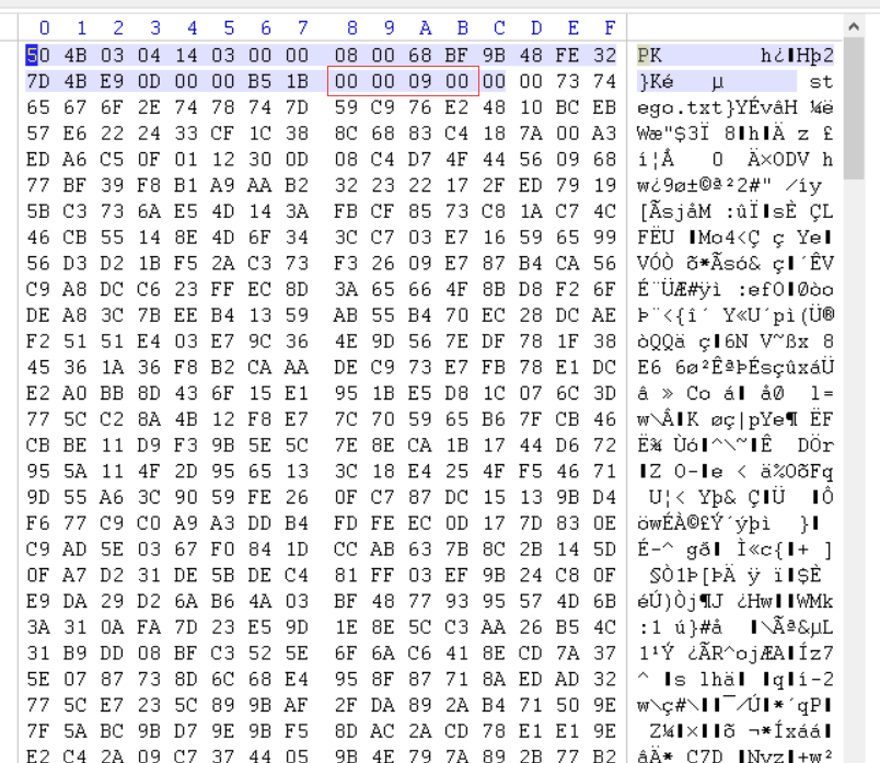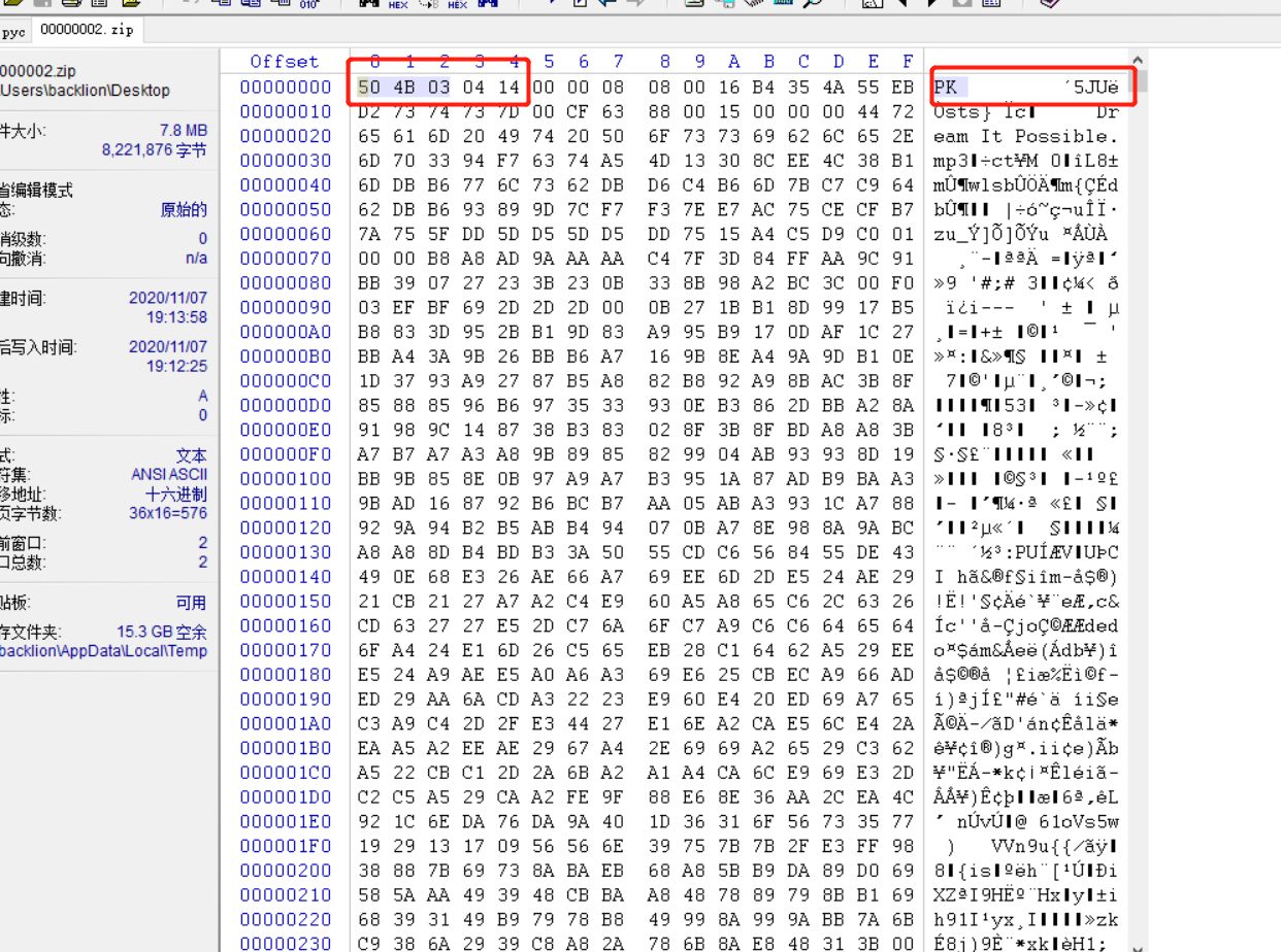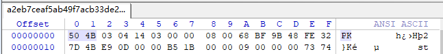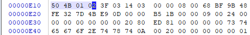 50 4B 03 04:这是头文件标记(0x04034b50)