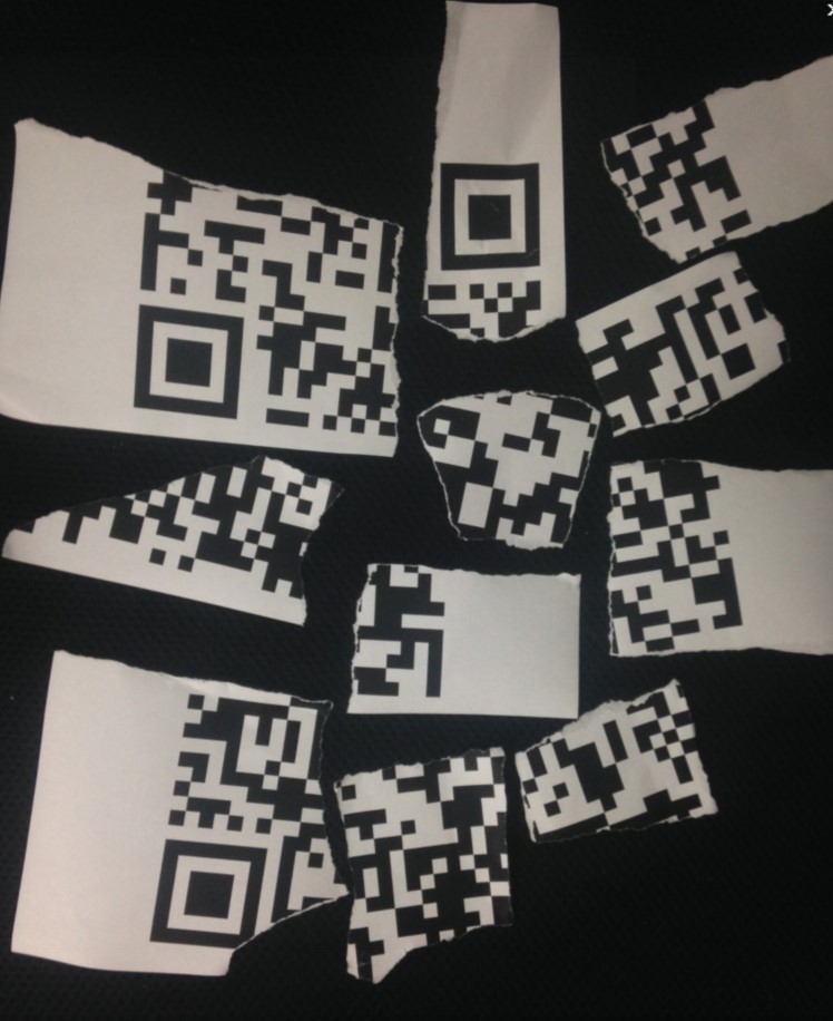 1.在其他地方找来一张完整的二维码,然后通过ps截取定位矩阵框,进行修复,最终得到