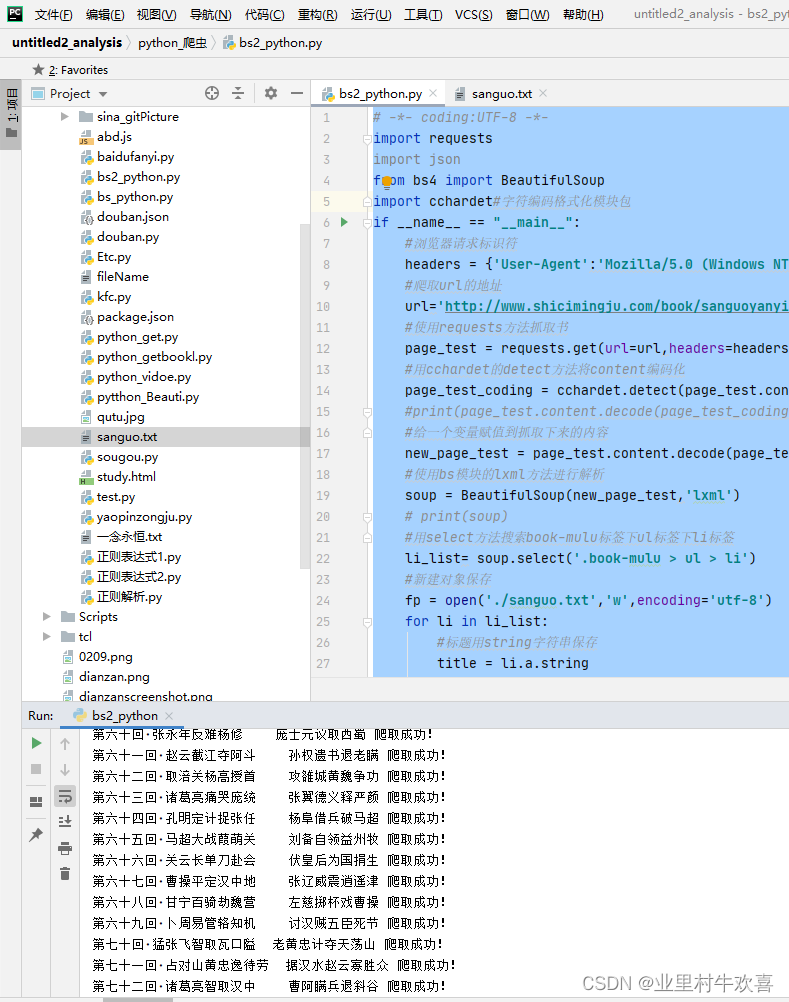 以上就是长情项链最近收集整理的关于python使用bs模块爬取小说数据一、BS模块介绍 二、分析页面架构 三、代码实现四、结果展示 五、总结思路的全部内容,更多相关python使用bs模块爬取小说数据一、BS模块介绍 内容请搜索靠谱客的其他文章。