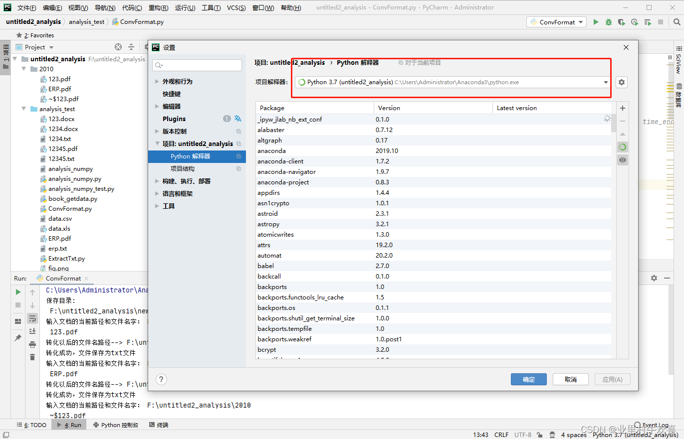 注意:调用项目中的ExtractTxt模块时,需要重新加载标记目录为源根文件夹。才可以使用封装的python写的模块(图片是标记后的截图) 其次转化过程中,word文档会提醒是否将文档转化,需要点击确定。