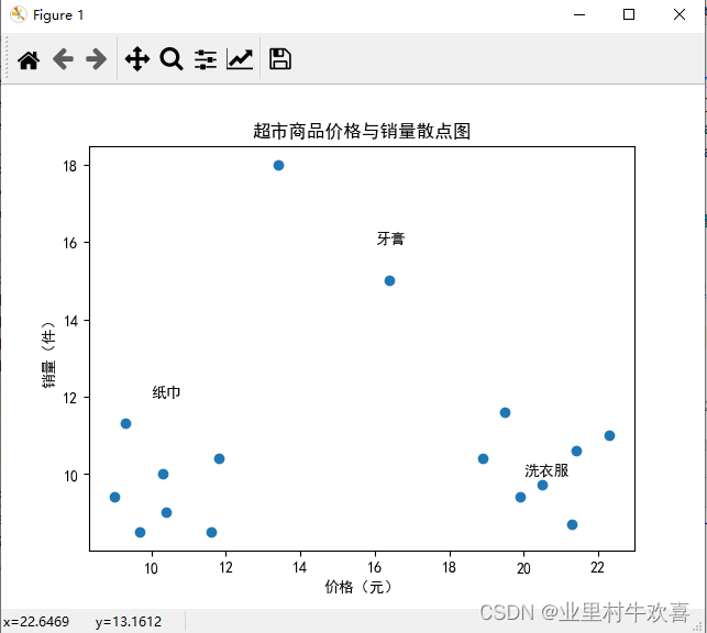 plt.text(16,16,'牙膏')#坐标16,16的地方添加文本。
