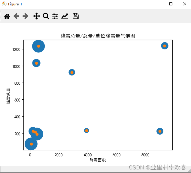 #气泡图、反应降雪面积,降雪总量和单位降雪量