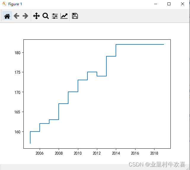 plt.step(year,height)#定义折线图