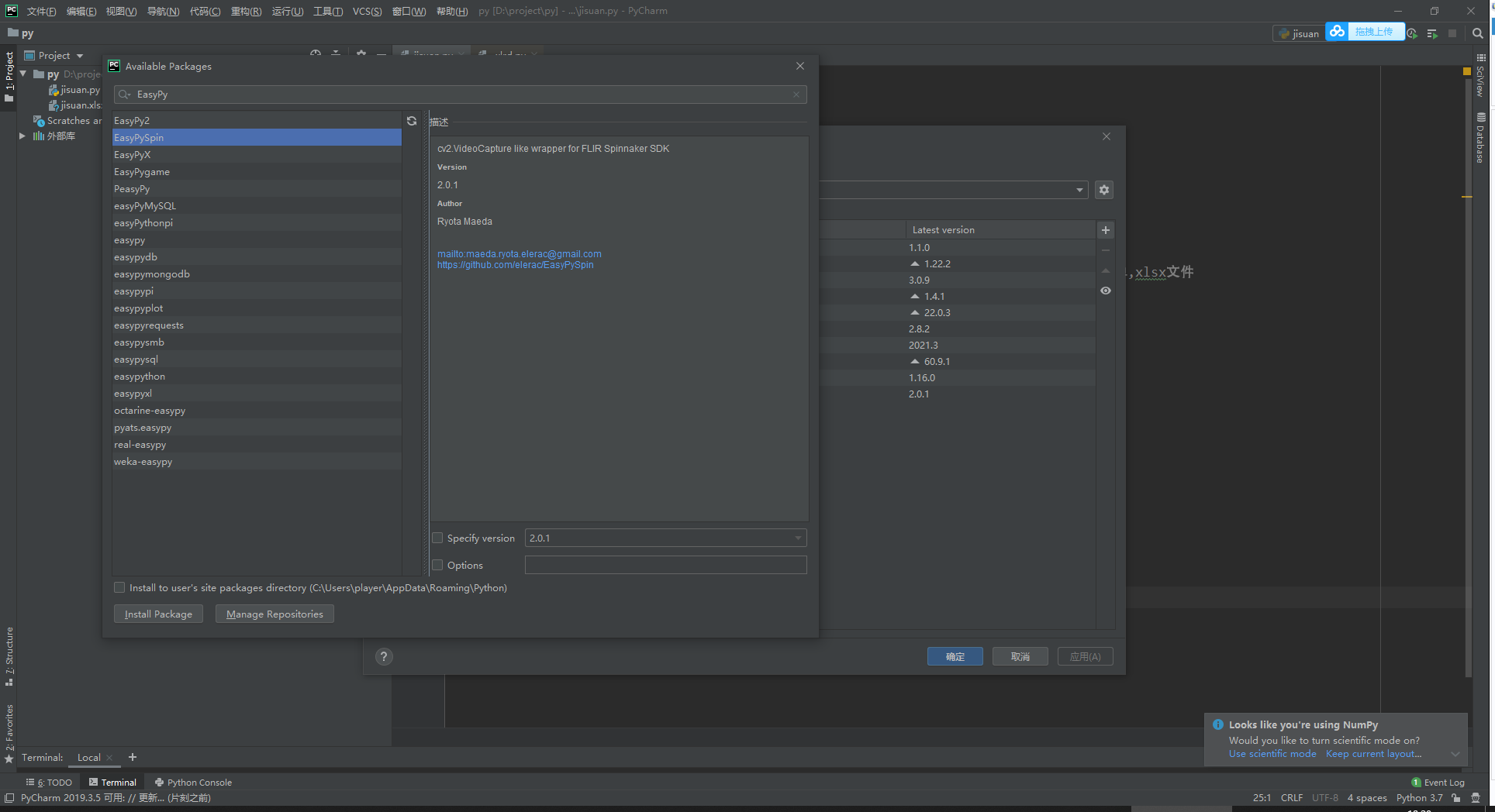 如果只调用EasyPySpin的库直接运行程序,会提示缺少PySpin的库函数因此需要安装PySpin库,该库不能通过setting进行安装需要