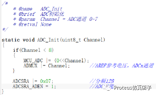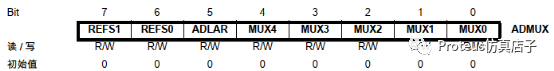 本案例使用的是外部AVcc参考电压,以及通道0,右对齐,所以ADMUX = 0x00。