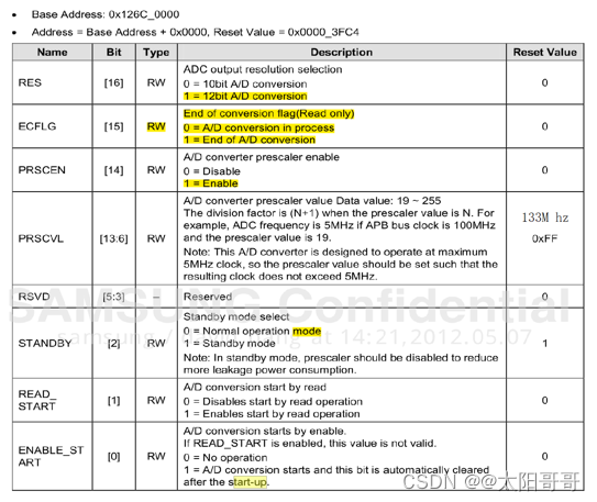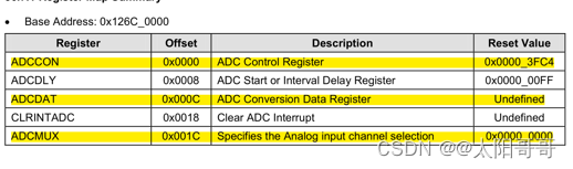 ADCDAT(数据寄存器):转换之后的数字量存储到寄存器中