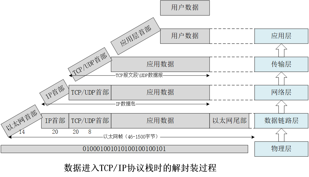 数据进入TCP/IP协议栈时的解封装过程如下: