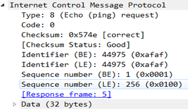 原理:使用ICMP协议的回送请求、回送应答。客户端发送回送请求给服务器,服务器返回一个ICMP回应应答。