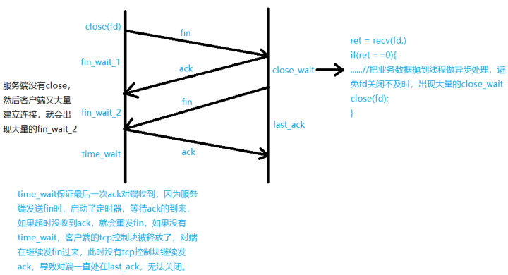 (b) 服务端在处理完缓冲区的数据后,调用close(fd)关闭对应的fd,发送fin包;
