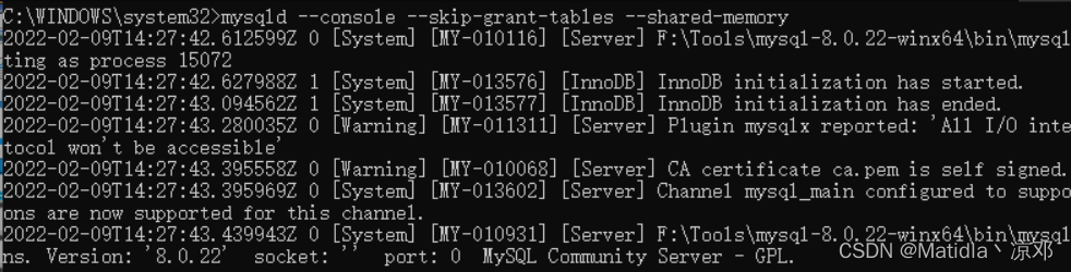 关闭所有控制台,重新打开一个,重启mysql服务,并登录。