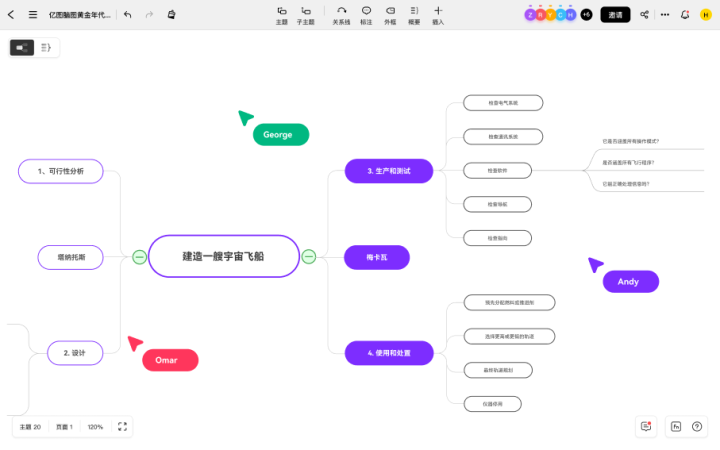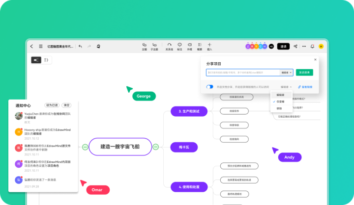 同时支持多位团队成员在一个文件内同时加入,并且可以实时同步和查看脑图效果,帮助大家省去了文件重复上传下载的过程。