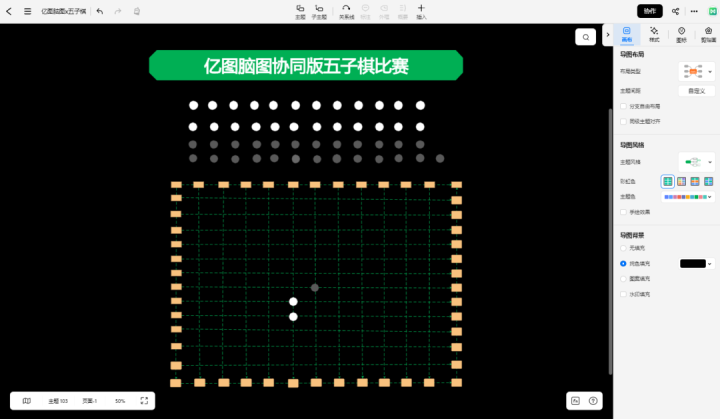 最后的最后,小M在亿图脑图协同版里摆了一个五子棋棋盘,来一起体验万人下棋不卡顿的感觉吧~!!(建议到电脑用chrome浏览器打开体验)