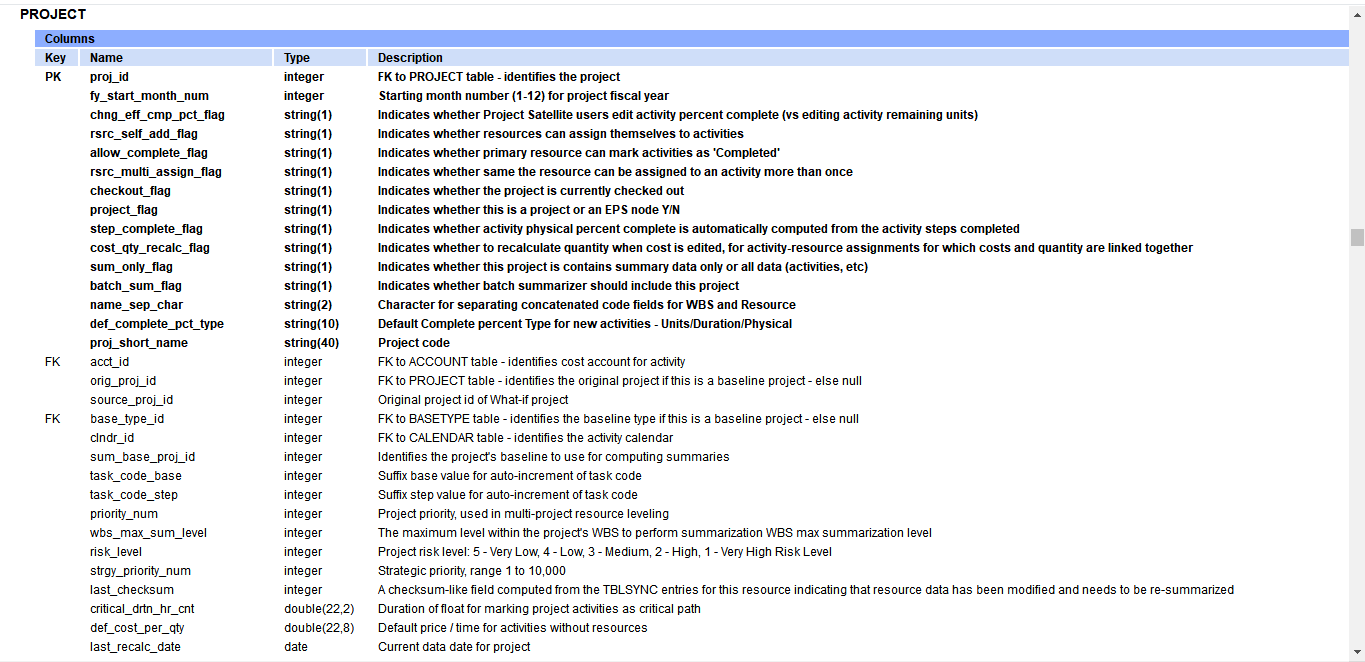P6 Data Dictionary (oracle.com)