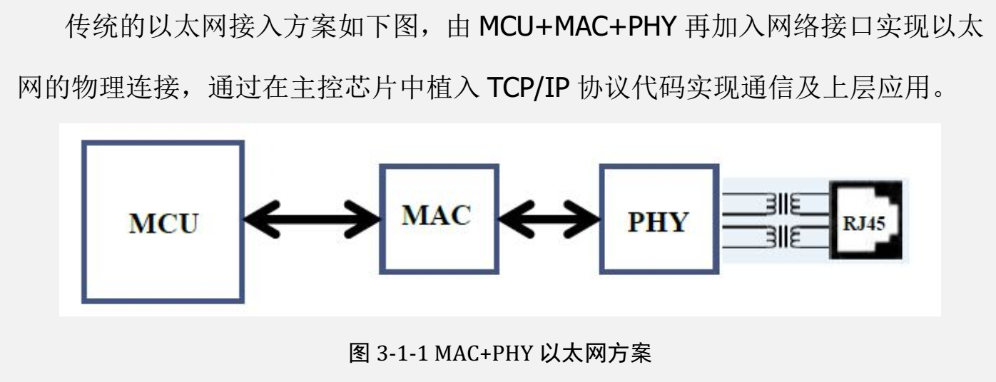 应用这种软件 TCP/IP 协议栈方式实现的比较成熟方案有 ENC28J60,CS8900A,DM9000,当然也有像 STM32F107 这类(内部自带 MAC)+PHY 等方案。