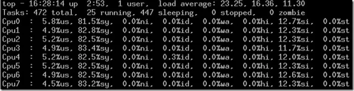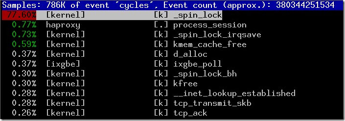 从上可以看到各个 CPU 都很忙,但是实际有用的 CPU 时间却很少,大部分的 CPU 消耗在_spin_lock 自旋锁上了,并且服务器并发吞吐量并没有随着 CPU 核数增加呈现线性增长,相反出现下降的情况。这是为什么呢?怎么解决?
