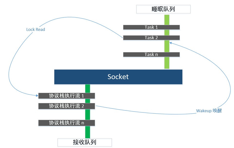 我们知道,一般一个 TCP 服务只有一个 listen socket、一个 accept 队列,而一个 TCP 服务一般有多个服务进程(一个核一个)来处理请求。于是并发请求到达 listen socket 处,那么多个服务进程势必存在竞争,竞争一存在,那么就需要用排队来解决竞态问题,于是似乎锁就无法避免了。在这里,有两类竞争主体,一类是内核协议栈(不可睡眠类)、一类是用户进程(可睡眠类),这两类主体对 listen socket 发生三种类型的竞争