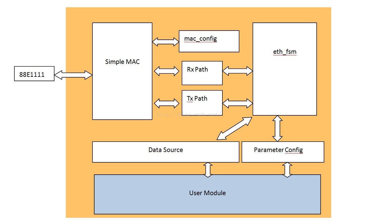 这个模块从eth_fsm取得数据和各种header,并发送给simple_mac, 下面是接口