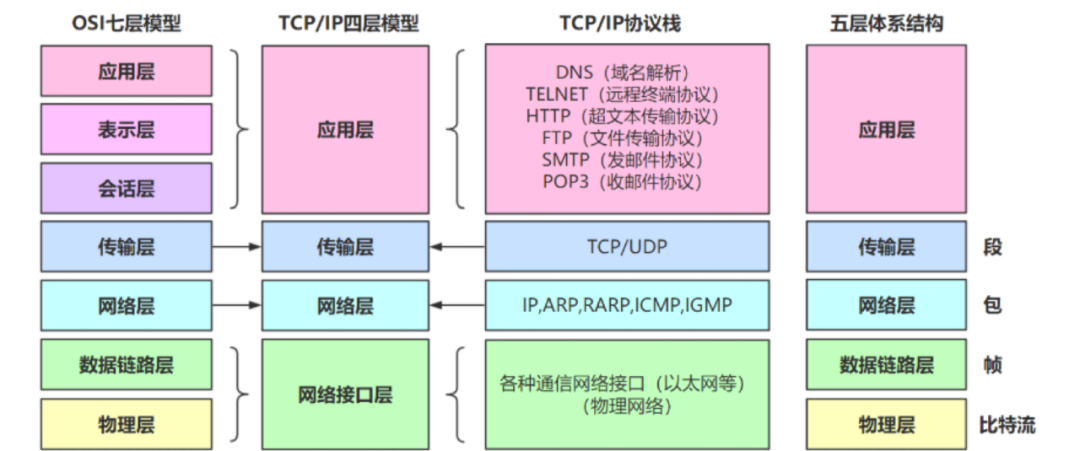 网络协议模型对比图: