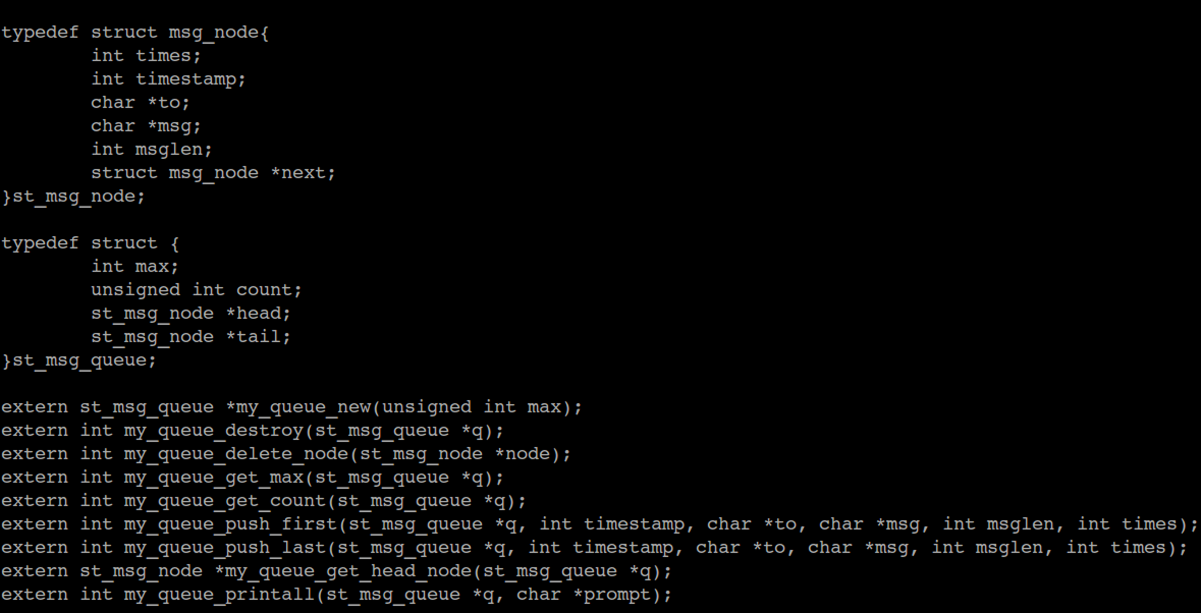 在我自己的开发过程中,经常需要使用消息队列来保存多条消息,每一条消息都存储长度不等的字符串,于是就自己写了一个最简单的消息队列实现模板,当然对于项目来说也是最合适的,因为是量体裁衣嘛。