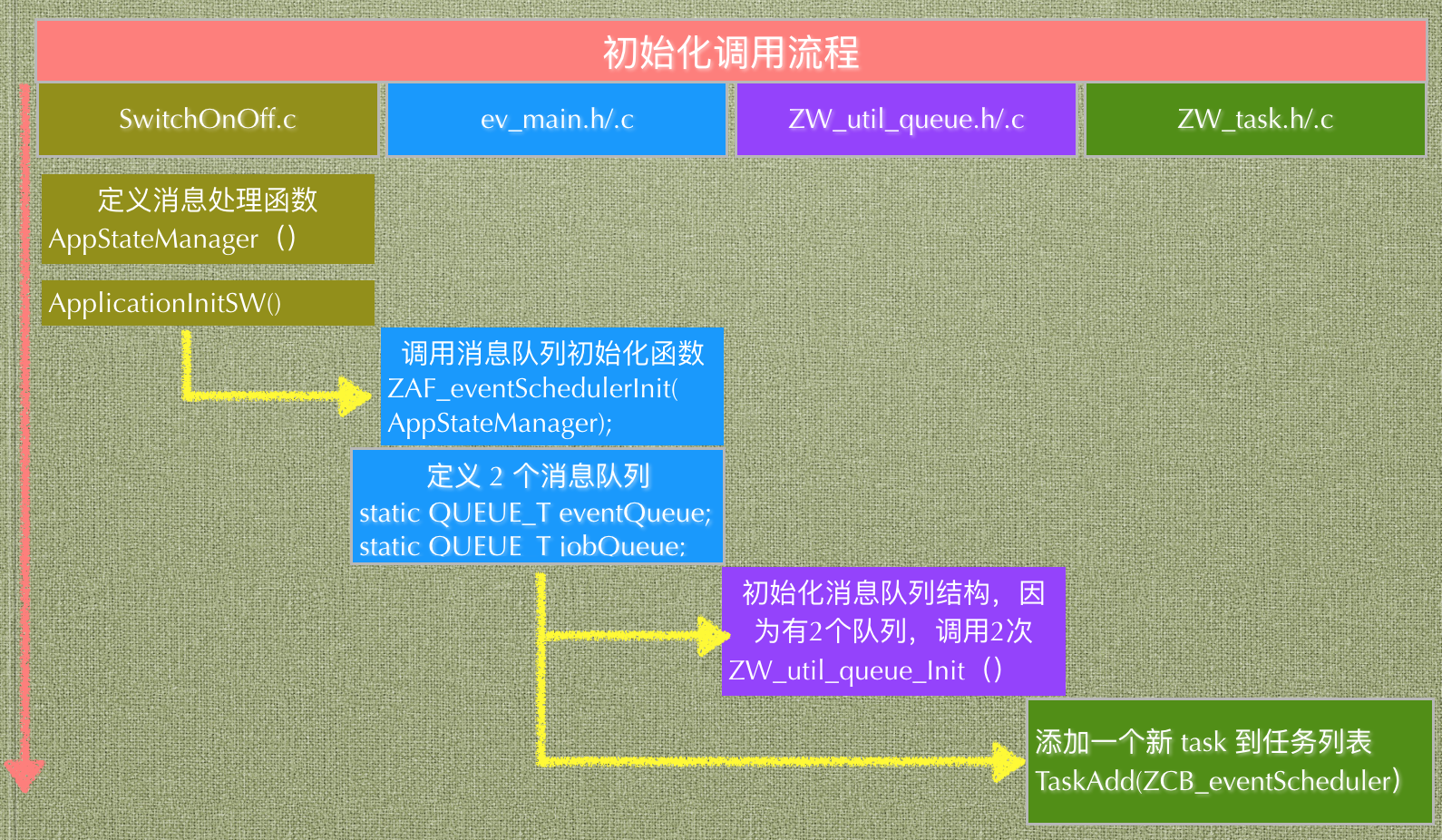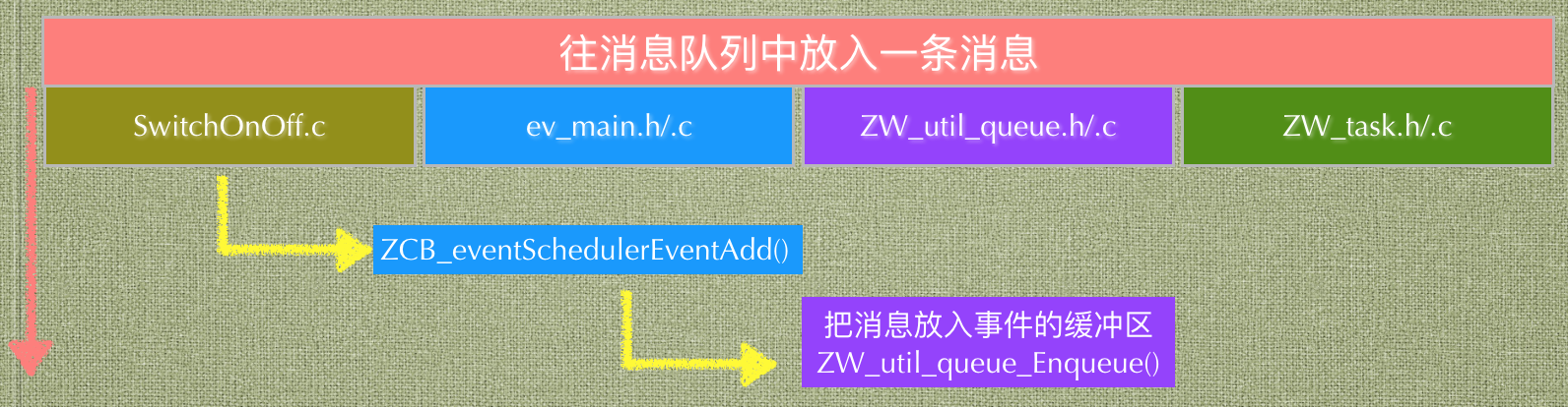 ZWave SDK 的每一个 Sample 中已经给我们提供了一个很好的消息队列编程模型,不过它还嵌入了一个 task 任务管理的机制,后面我会简单画一下 task 的处理逻辑,但是不会深入探究。