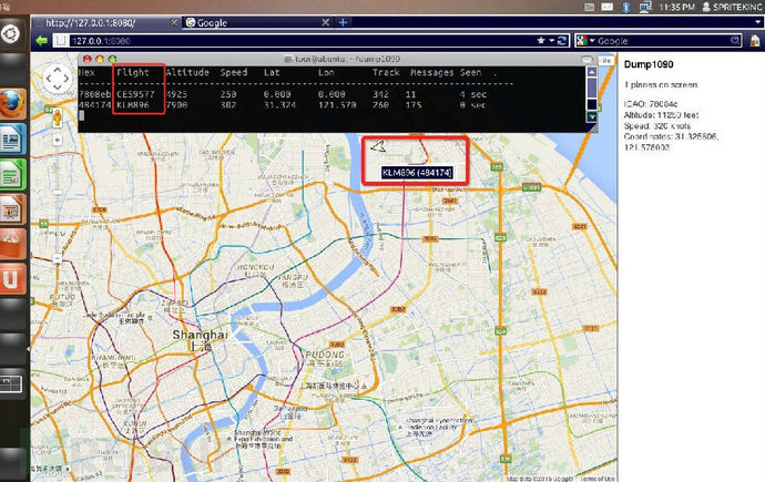 dump启动时会开启自带的WEB服务器,并且WEB调用了谷歌地图的API 接收到飞机的一些信息后 会在页面地图上描绘出飞机的轨迹(谷歌地图目前需要翻墙):