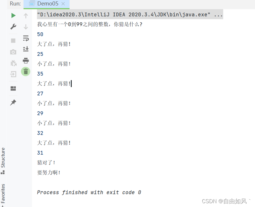 * 从控制台输入猜测的数字,输出提示太大还是太小,继续猜测,直到猜到为止,
