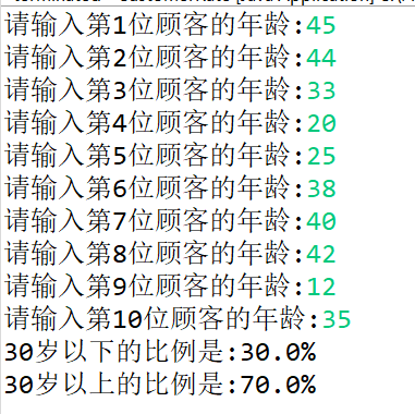 System.out.println("30岁以下的比例是:"+count1/10*100+"%");