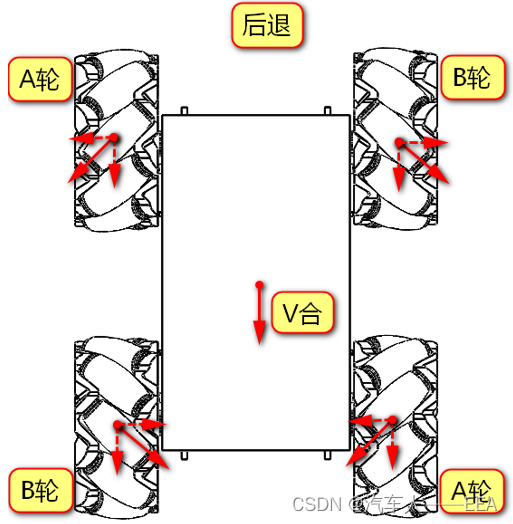2.倒退:(AB轮可以相互抵消轴向速度)