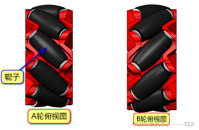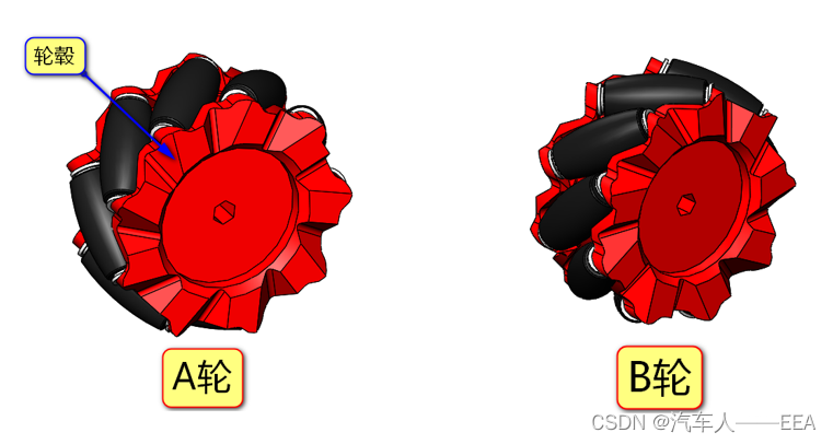 麦克纳姆轮:简称麦轮,由轮毂和围绕轮毂的辊子组成。