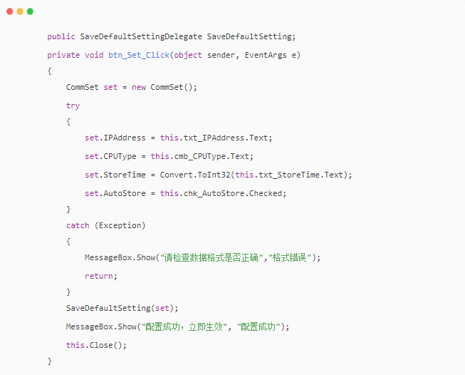 通信参数为系统参数,采用Winform的Settings来进行配置存储,简单快捷。