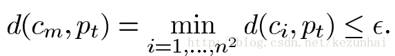 这种距离叫做HSV Color Hexcone,对光照变化具有较强的鲁棒性。另外,假设图像中(x,y)处的像素对应的背景模型为C=(c1,c2,...,cn2),则采用上式计算当前像素与背景模型的距离,如果最小距离满足下式:
