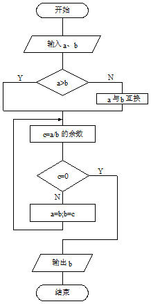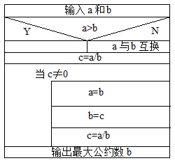 【实例2.8】 求两个数a和b的最大公约数。流程图如图所示: