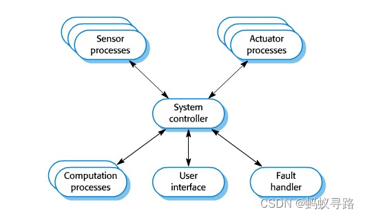 系统控制器进程根据系统状态变量决定何时启动或停止进程。它检查其他进程是否产生了要处理的信息或将信息传递给它们以进行处理。控制器通常连续循环,轮询传感器和其他过程以了解事件或状态变化。因此,该模型有时称为事件循环模型。