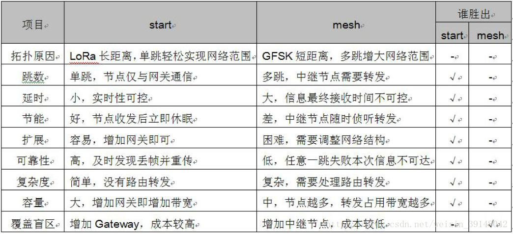 LoRaWAN与其他组网协议对比: