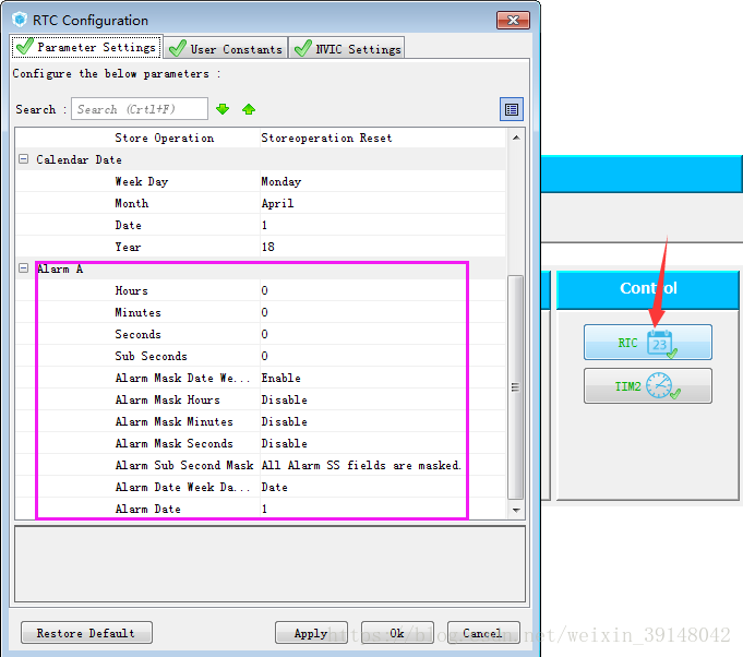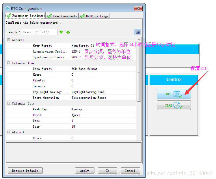 RTC外设配置: