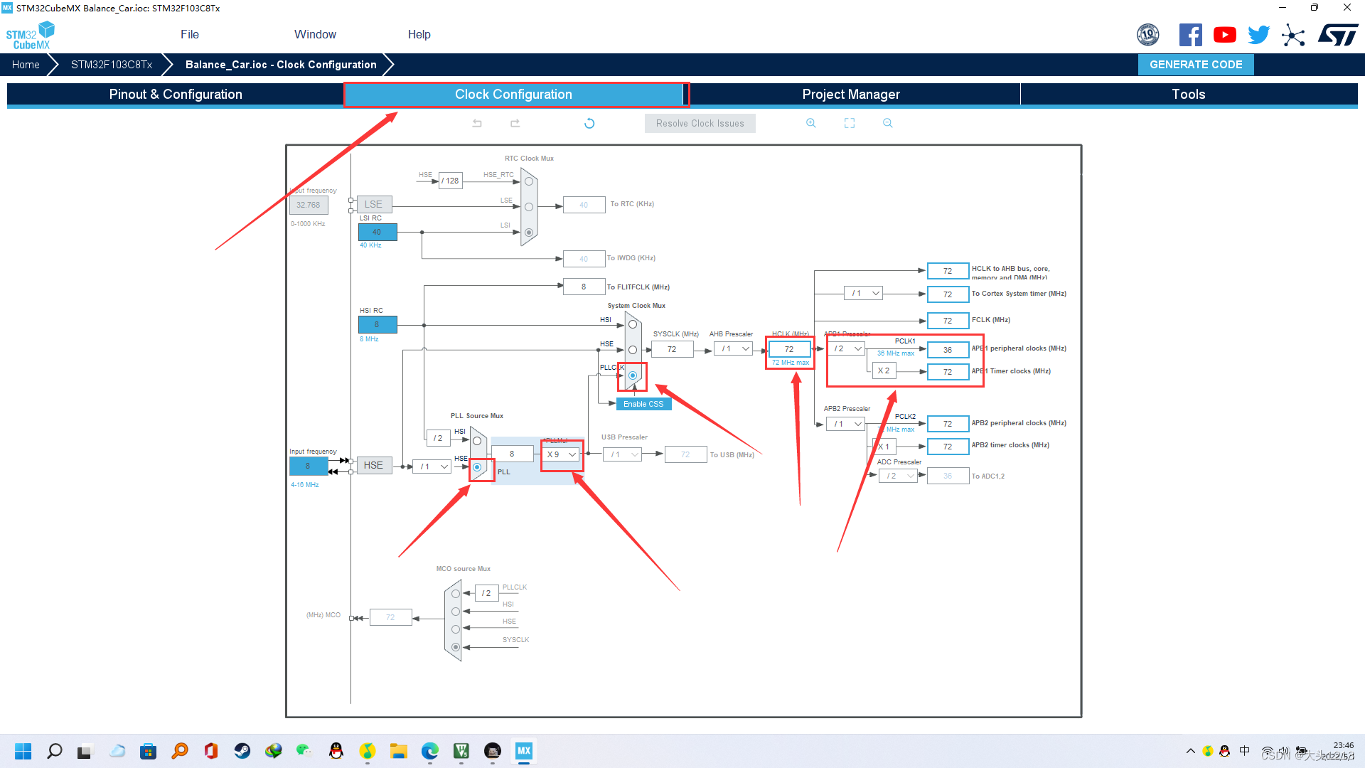 1、配置RCC、SYS、时钟树