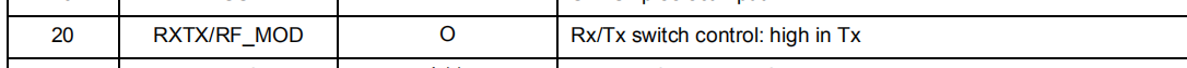 ——一般的射频开关,都需要两个GPIO来切换,仔细查看SX1278/76的手册,可以利用RXTX/RF_MOD这个引脚,然后选择一个有单控模式的射频开关,即可代替两个GPIO。