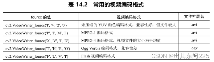 在 OpenCV 中,使用 cv2.VideoWriter_fourcc()来确定视频编码格式