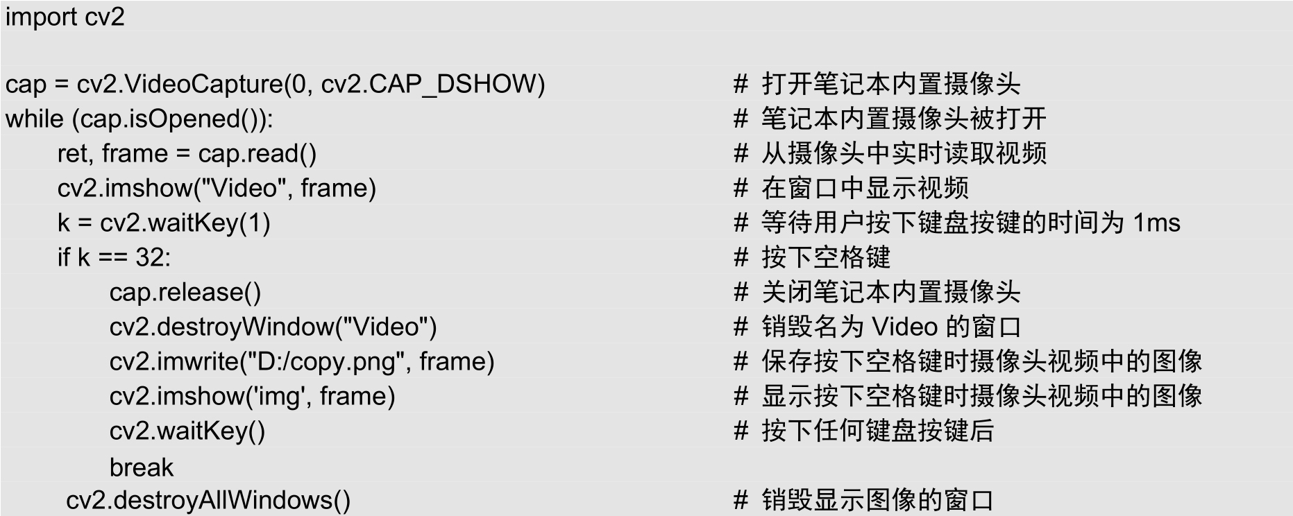 cv2.VideoCapture.release() # 可以简写为 capture.release()
