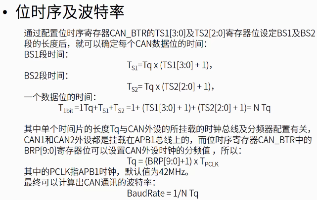 由于CAN属于异步通讯,没有时钟信号线,连接在同一个总线网络中的各个节点会像串口异步通讯那样,节点间使用约定好的波特率进行通讯。