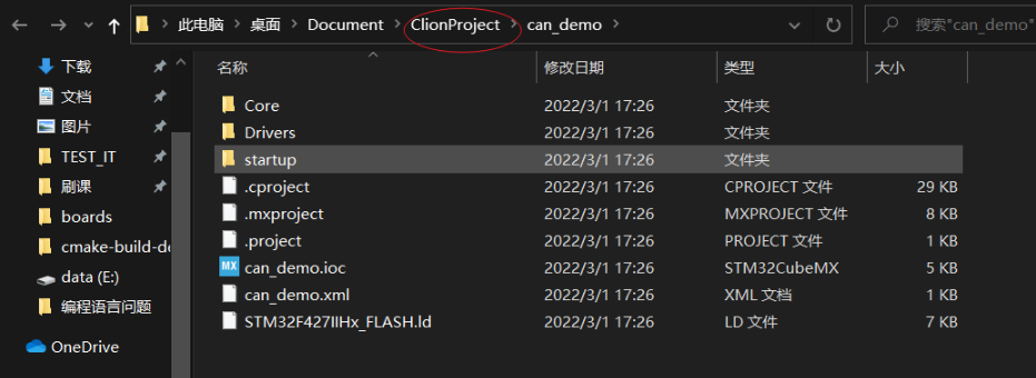 之后返回打开的文件夹的上一层,然后右键用clion打开文件
