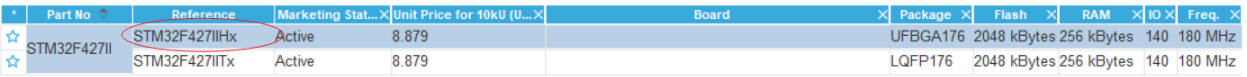 通过查看主控板的手册,可以知道主控芯片用的是STM32F427IIH6芯片,因此在Cubemx中选择对应的芯片型号,进入配置。