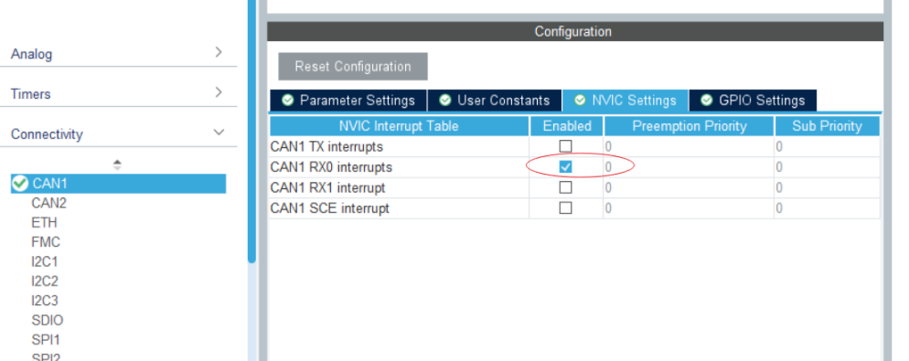 如果数据通过了过滤器,进入到了对应的FIFO,那么它就会产生一个中断,因此我们要使能这个接收中断,这样才能在中断产生的时候进入到中断中去,进行下一步的处理。