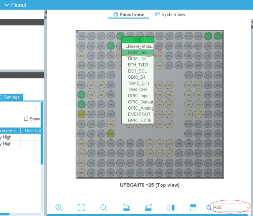 如果引脚不对应那么根据原理图中的引脚,在Cubemx中找到对应的引脚选择上对应的功能