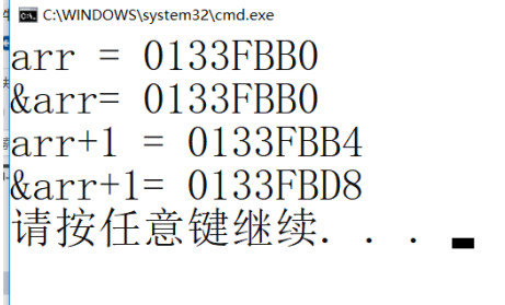 根据上面的代码我们发现,其实&arr和arr,虽然值是一样的,但是意义应该不一样的。