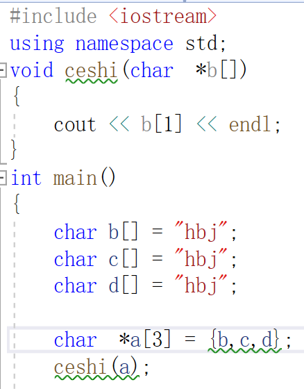 注意这个三下的示例是双指针型*a[]是存储的一组指针变量,这个时候a是存储地址的地址啊;a[i]依旧是地址,*a[]这种写法作为函数参数的传递是第一种的写法的深究与继续探讨,(建议把第一种情况打下来,然后想一想,再作探究)。